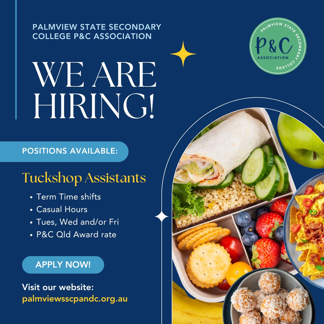 The P&C is currently looking to hire additional Casual Tuckshop Assistant(s) to assist our Tuckshop team across our expanding operating days: Tuesdays, Wednesdays and Fridays.